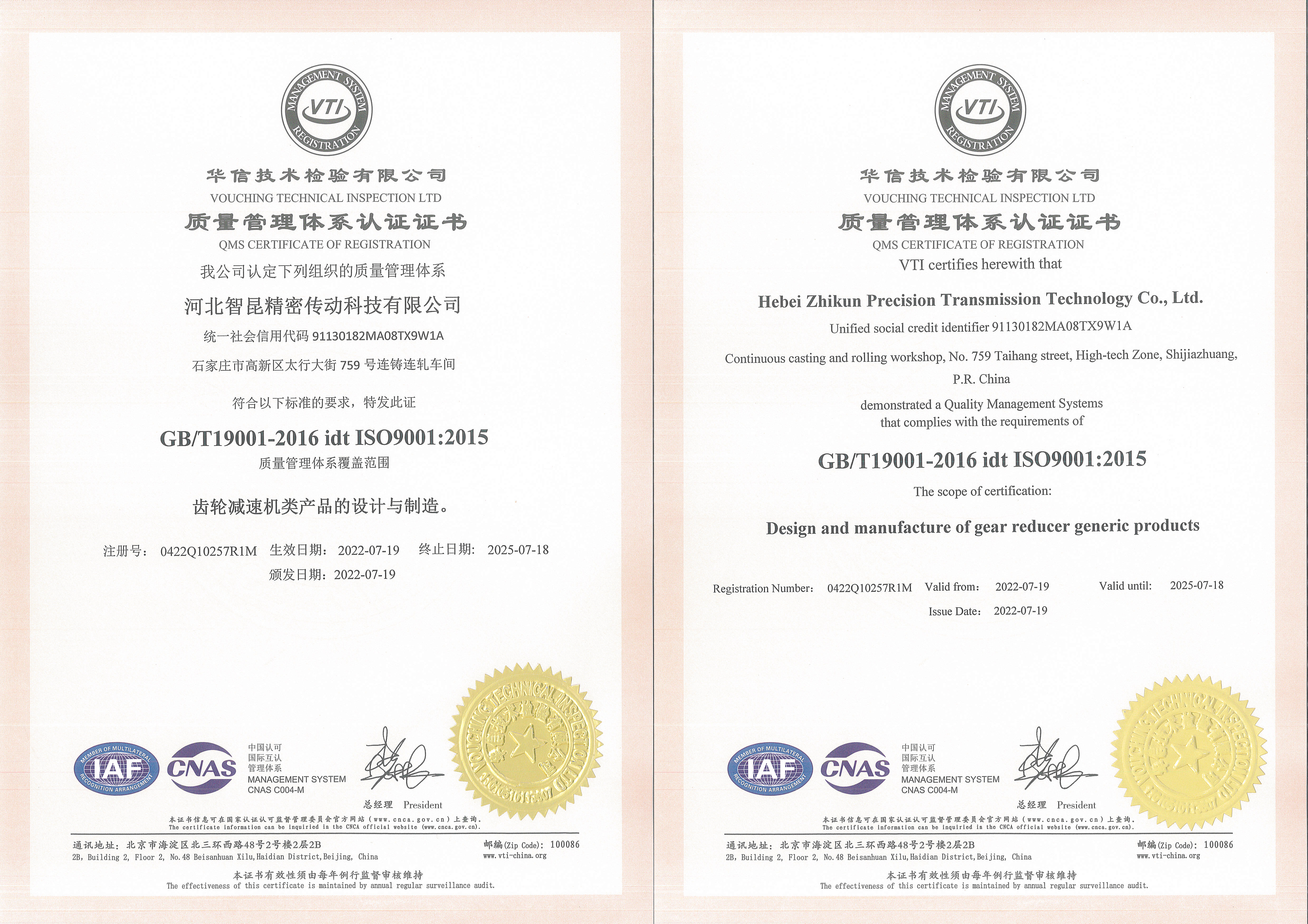 質量管理體系認證證書
